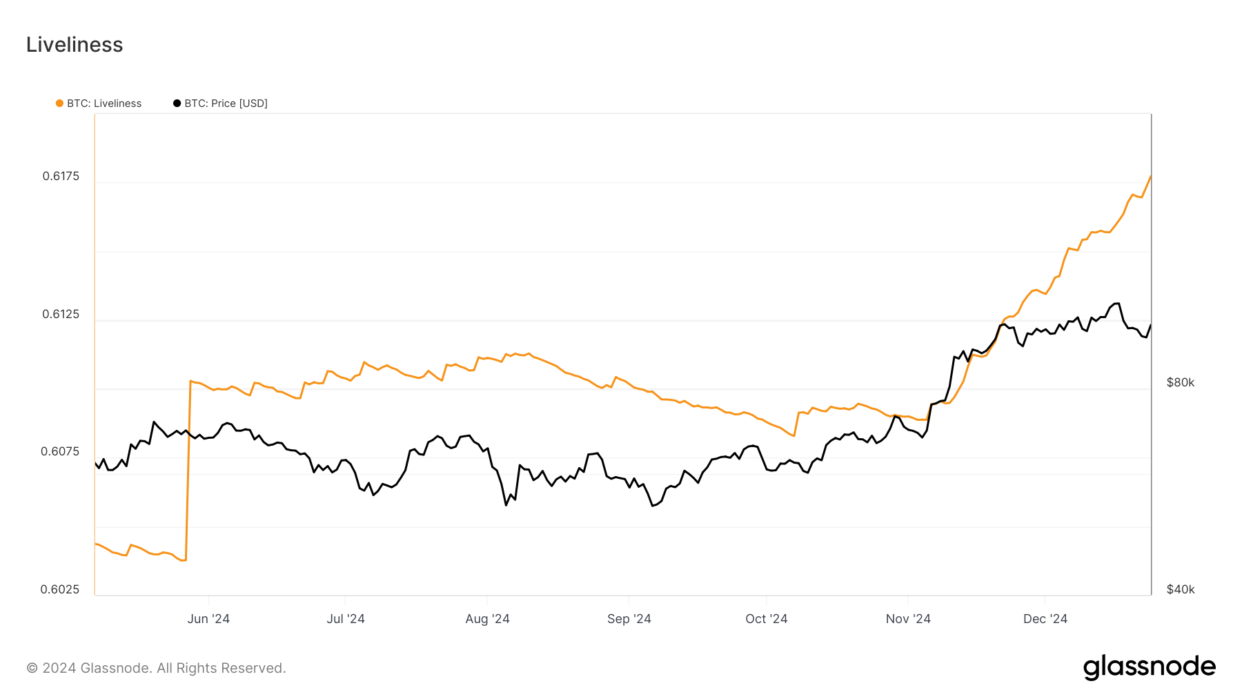 Bitcoin’un Canlılık metriği, son fiyat durgunluğuna rağmen yükselmeye devam ediyor. Bu, uzun vadeli yatırımcıların (LTH’ler) pozisyonlarını giderek daha fazla tasfiye ettiğini gösteriyor. Genellikle Bitcoin’un istikrarının bel kemiği olarak kabul edilen LTH’ler, yaklaşan bir fiyat düşüşünden kaynaklanabilecek potansiyel kayıpları azaltmak için varlıklarını elden çıkarıyorlar.