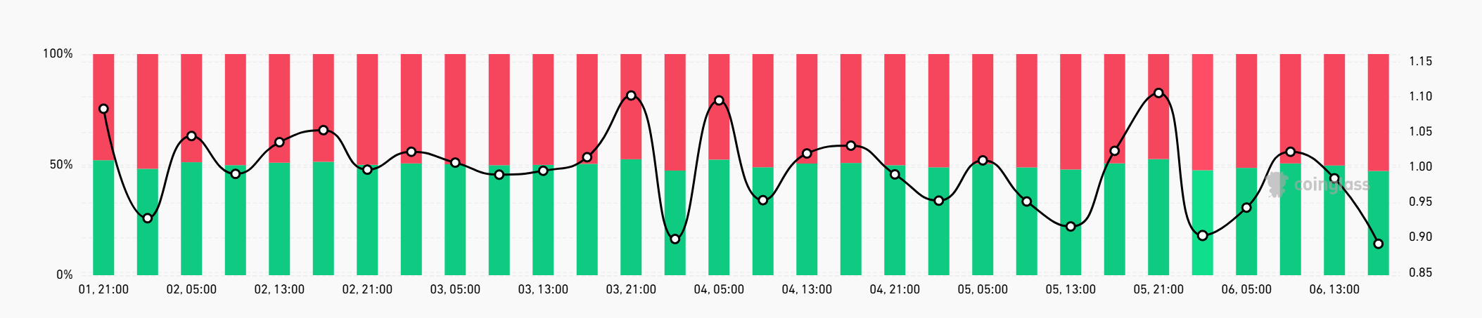 Bitcoin için long-short oranı 0,89’a düşüyor ve short pozisyonlar artık aktivitenin neredeyse %53’ünü oluşturuyor. Bu değişim, Bitcoin’in kısa vadeli yönü hakkındaki artan şüpheciliği yansıtıyor.