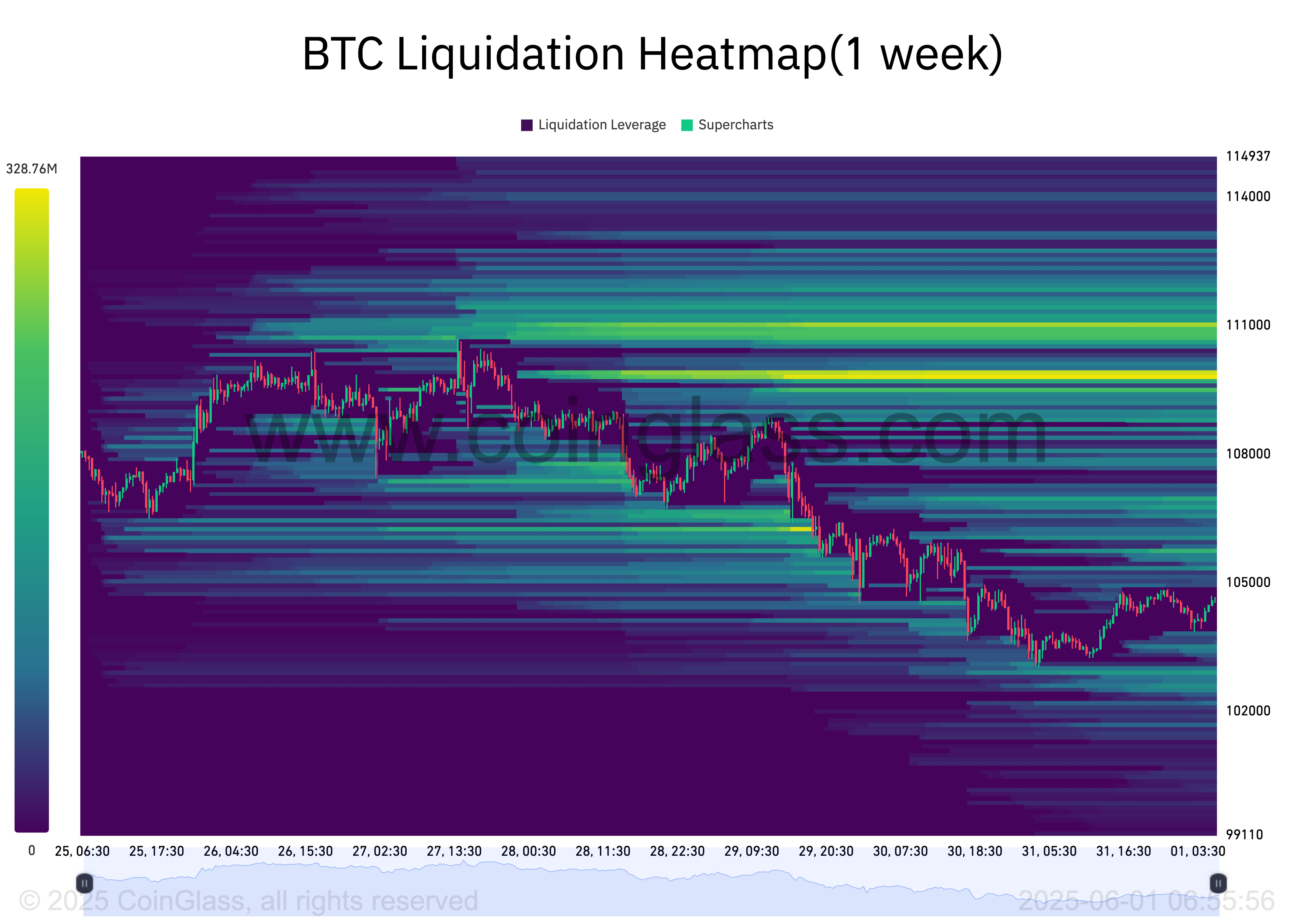 BTC’nin likidasyon ısı haritasının değerlendirilmesi, 109.933 Dolar fiyat bölgesinde dikkate değer bir likidite yoğunluğunu gösteriyor.