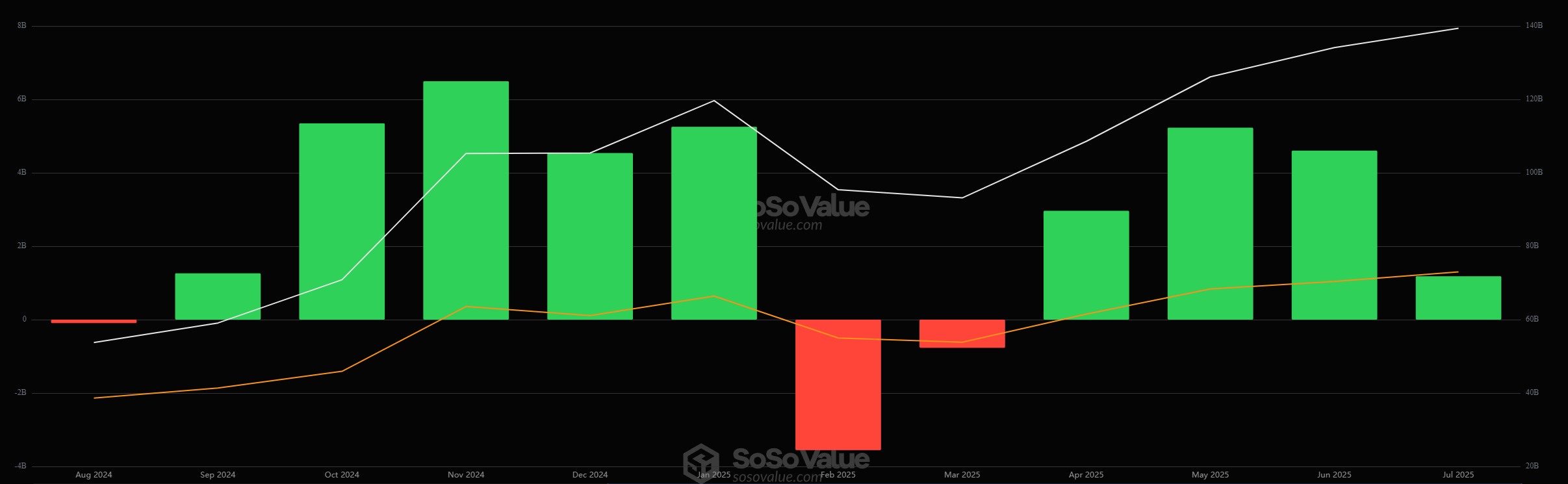 Kıyaslandığında, en büyük altın ETF’si aynı dönüm noktasına ulaşmak için 15 yıldan fazla zaman aldı. Kurumsal akışlar artık fiyat hareketinin güçlü bir itici gücü ve Bitcoin’i ana akım portföylere daha da derinleştiriyor.