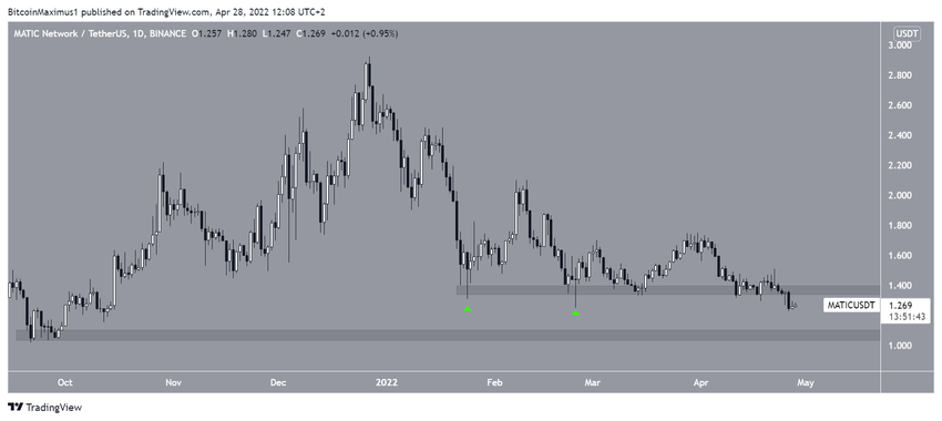 Polygon (MATIC) 27 Aralık’ta 2,97 dolar seviyesinde bir tepe oluşturdu. Ancak daha sonra bir düşüş hareketi başladı. Diğer yandan altcoin, 1,37 dolardaki yatay bölge üzerinden iki kez sıçrama gerçekleştirdi. Dolayısıyla bu süreçte, aşağı sarkan iki uzun fitil meydana geldi (yeşil oklar).