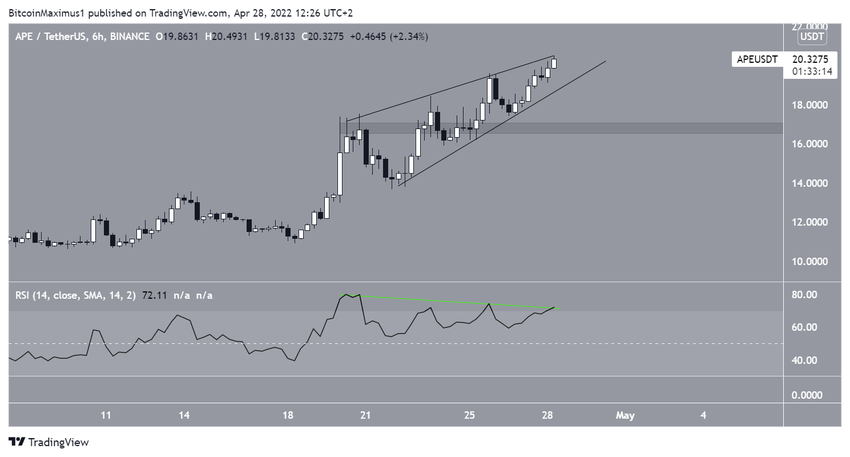 Ayrıca altı saatlik grafik ölçeğindeki RSI, negatif uyumsuzluk oluşturdu. Dolayısıyla APE, takoz formasyonundan kırlıım gerçekleştirebilir. Bu durumda en yakın destek, 16,80 dolarda yer alıyor.
