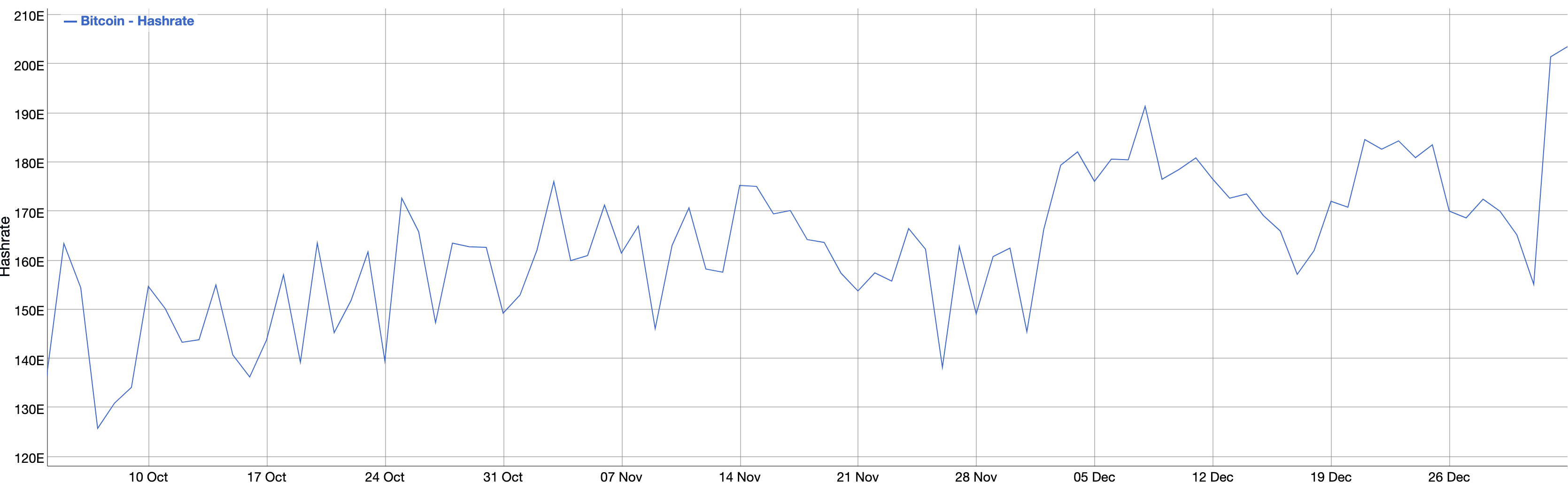 ABD’nin devreye girmesi ile birlikte Bitcoin işlemci gücü sorunu çözülmüş gibi görünüyor. Haziran ayından bu yana artan işlemci gücü özellikle aralık ayında, nisan ayında yakaladığı güçlü seviyenin üzerine çıkmaya başladı.