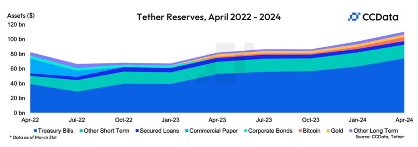 Şirketin stratejisi, finansal sonuçlarının kanıtladığı gibi başarılı olduğunu kanıtladı. İlk çeyrekte, Tether önemli karlar bildirdi . USDT’nin piyasa değeri 111 milyar dolara ulaşarak rekor kırdı ve merkezi borsalardaki ilk on stablecoin arasındaki işlem hacminin %77’sini oluşturdu.