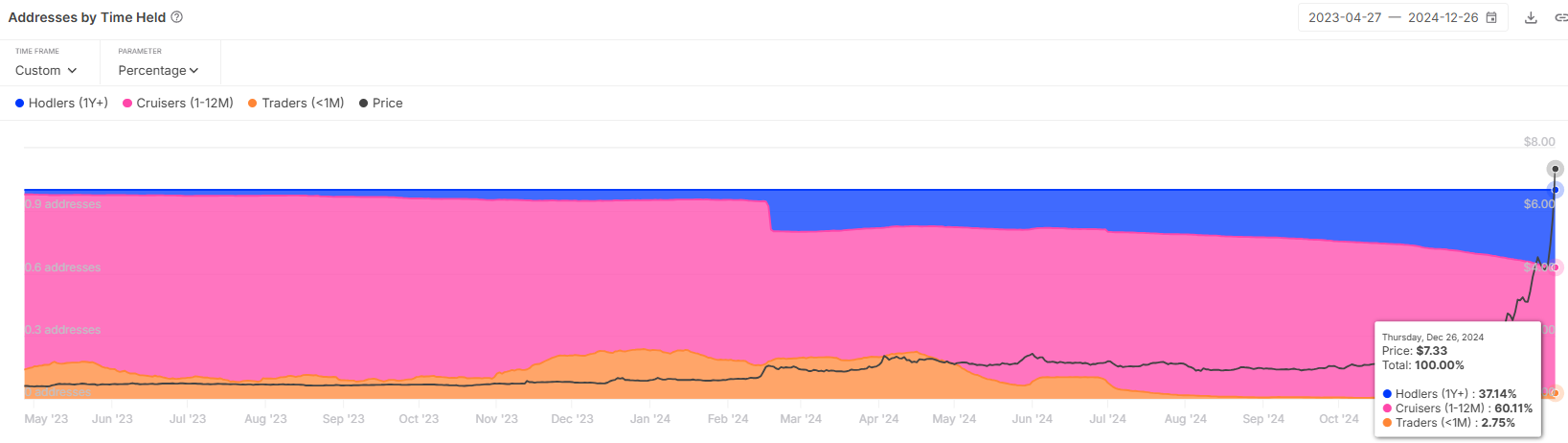 Bitget Token’ın makro momentumu, HODLer’lardan güçlü uzun vadeli destek olduğunu gösteriyor. Geçen ay boyunca, uzun vadeli yatırımcılar tarafından tutulan arzın oranı %11 arttı. Genellikle varlıkları bir yıldan fazla süreyle elinde tutan bu yatırımcılar, fiyat istikrarını ve piyasa güvenini sağlamada kritik bir rol oynuyor.