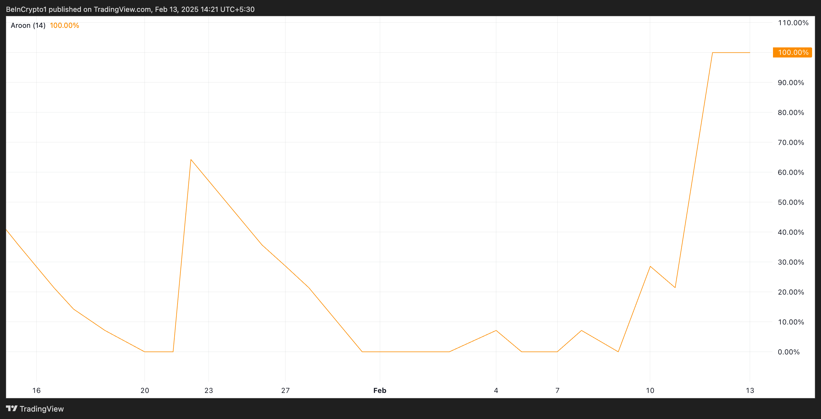 Ayrıca, coin’in Aroon Up Hattı %100 seviyesinde, mevcut yükseliş trendinin gücünü vurguluyor.