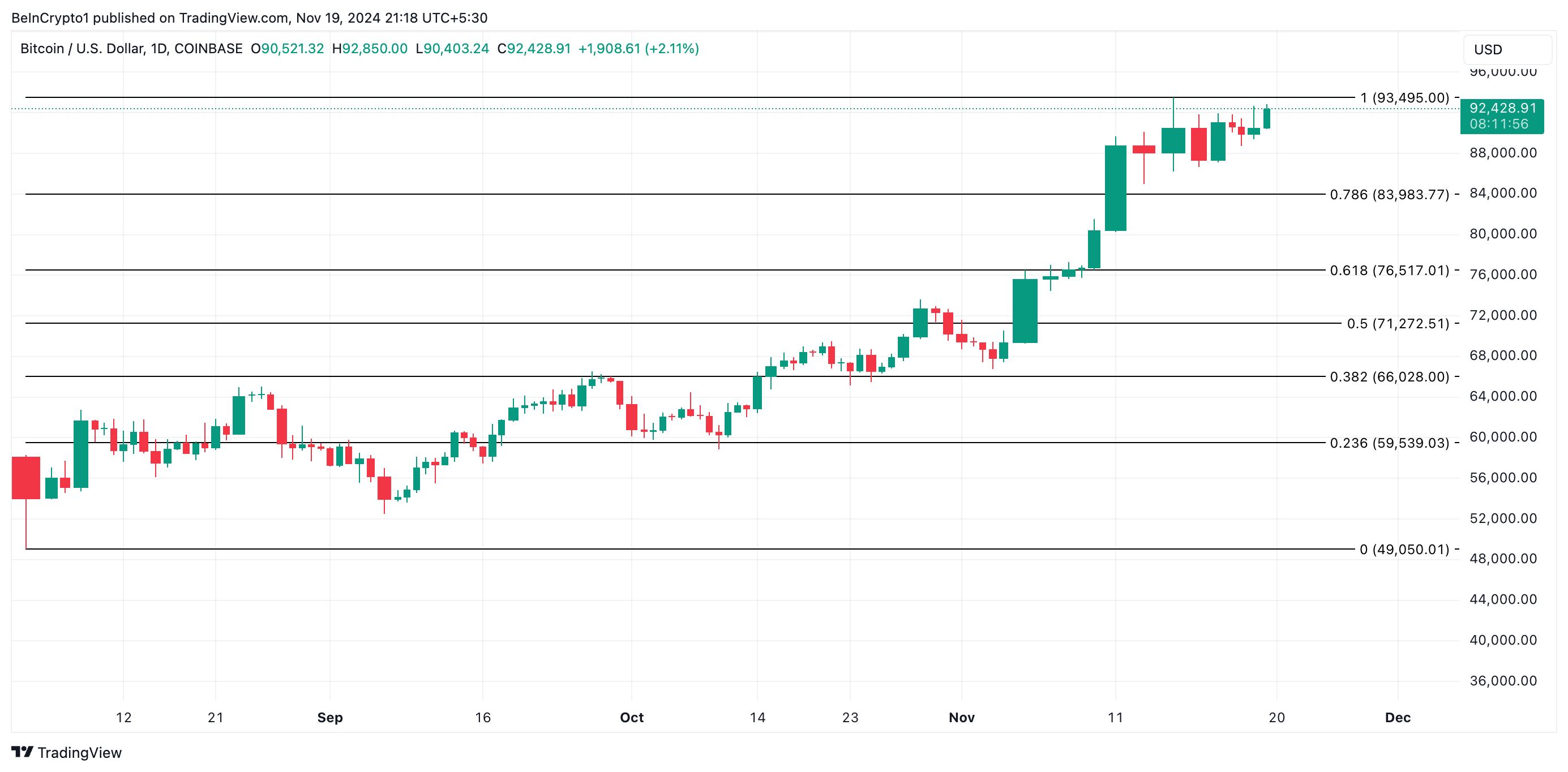 Basın zamanında, BTC $92,428’den işlem görüyor, döngü zirvesi olan $93,495’in biraz altında. Eğer LTH’lar kar realizasyonu aktivitelerine devam ederse, BTC’nin fiyatı bu yüksek seviyeden daha da düşerek $90,000’in altındaki destek seviyelerine doğru gerileyecektir. Coin’in Fibonacci Geri Çekilme aracından alınan verilere göre, bir sonraki önemli destek $83,983’te oluşuyor.