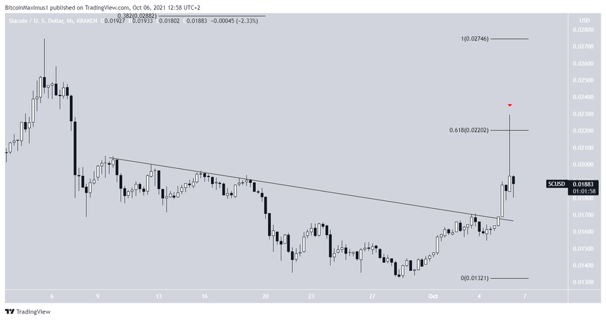 Siacoin (SC) 3 Ekim’de alçalan direnç çizgisinden çıkış gerçekleştirdi. Ayrıca yükseliş hareketi, direncin aşılmasının ardından da devam etti.