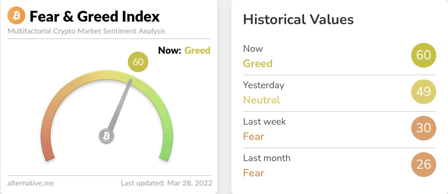 Bitcoin’in Kasım ayındaki ATH’sinden bu yana ilk kez, “açgözlülük” bölgesine girdiği görülüyor. Korku ve açgözlülük endeksi şu anda 60’ta yer alıyor. 2022’de endeks ilk kez, ortalama kripto para yatırımcısının risk almaya bu kadar açık olduğunu gösteriyor. Açgözlülük hissiyatının kendisi gibi dönüşü de etkileyiciydi. Sadece bir hafta önce, hissiyat 22/100 olarak ölçülmüştü. Bu ölçüm aşırı korkuyu temsil ediyordu.