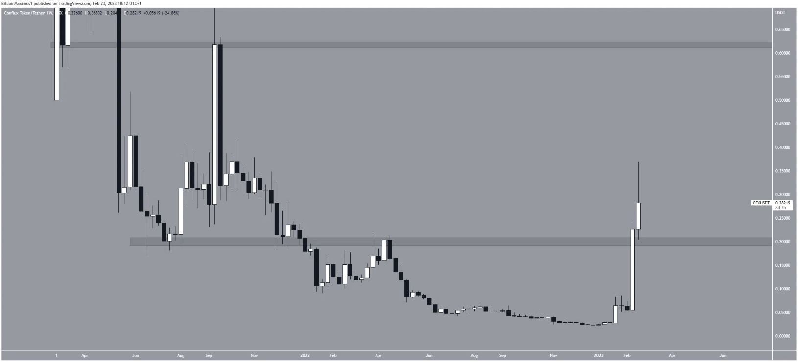 “Conflux fiyatı, son iki gün içinde büyük bir artış gördü. Bu süre zarfında, bir yıldan uzun süredir direnç görevi gören 0,20 dolarlık yatay alandan da çıktı. Altcoin bu alanın üzerinde olduğu sürece trend yükseliş olarak kabul edilir. Bu durumda, bir sonraki direnç 0,60 dolarda olacaktır. Ancak, CFX fiyatı 0,20 doların altına kapanırsa, bu kırılmanın kalıcı olmadığı anlamına gelir. Bu 0,05 dolara düşüşe neden olabilir.”