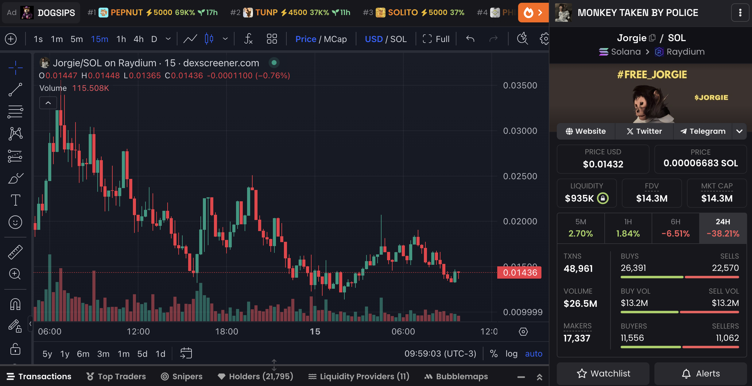 Jorgie coin de yalnızca iki gün önce Pumpfun üzerinde piyasaya sürüldü. Şu anda 14,3 milyon dolarlık bir piyasa değeri ve 22.000 sahibe sahip.