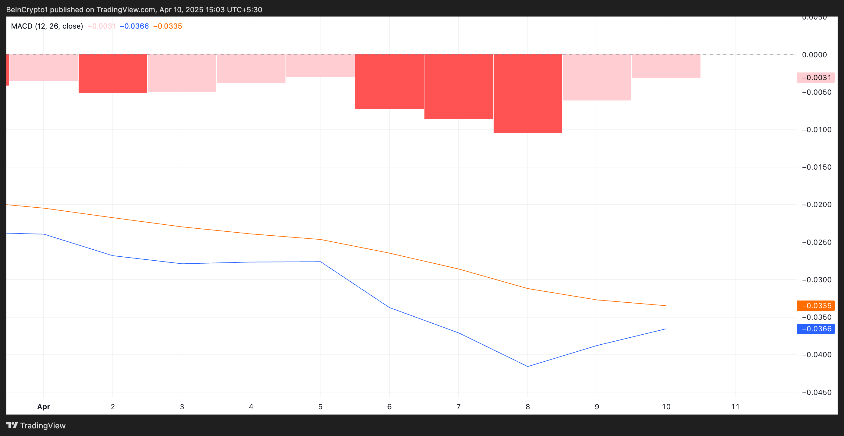 MACD göstergesi, varlık fiyatı trendlerini ölçer ve dönüş noktalarını belirler. Potansiyel bir altın kesişim ortaya çıktığında, genellikle yukarı yönlü momentumun erken bir göstergesi olarak görülen yaklaşan bir yükseliş kesişimini ima eder.