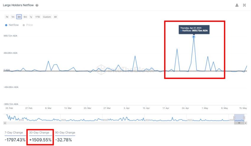 Buna göre son 30 gün içerisinde bu cüzdanlara girişlerde %1.500’lük bir artış görüldü. Bu, Cardano balinalarının yükseliş beklentisini koruduğu şeklinde yorumlandı.