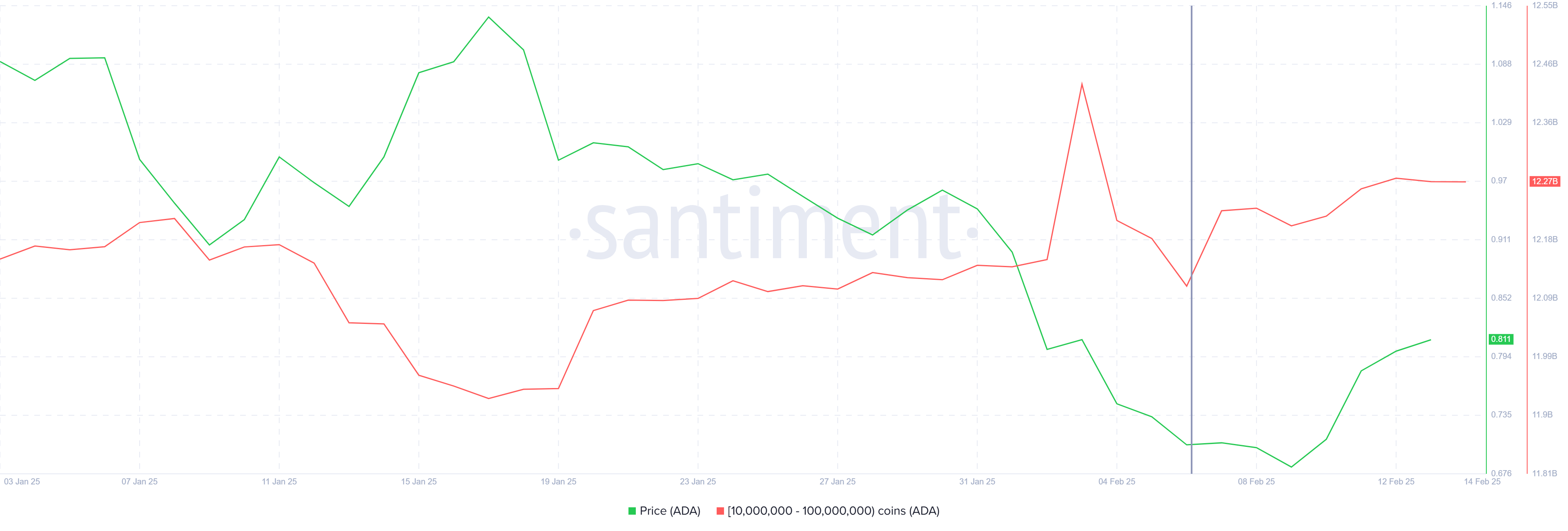 10 milyon ile 100 milyon ADA arasında tutan adresler, bu hafta sadece beş gün içinde yaklaşık 136 milyon Dolar değerinde 170 milyon ADA ekledi. Bu balinalar, düşük fiyatlardan biriktirme fırsatını değerlendirerek toparlanma için iyimser olduklarını gösteriyor. Gelecekteki fiyat hareketine olan güvenleri, ADA’nın fiyatı için kritik destek sağlayabilir.