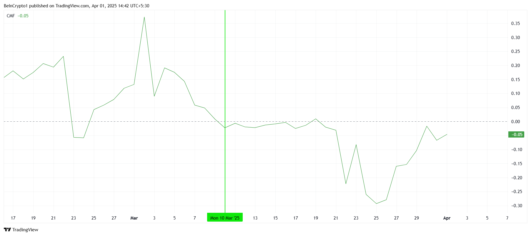 Cardano’nun makro momentumu da yatırımcı desteğinin eksikliğinden etkileniyor, bu da Chaikin Money Flow (CMF) göstergesiyle gösteriliyor. CMF, son üç haftadır sıfır çizgisinin altında sıkışmış durumda, bu da paranın Cardano’dan çıktığını, içine girmediğini gösteriyor. Bu, yatırımcı güveninin düşük olduğunu ve fiyat artışının önündeki büyük bir engel olduğunu gösteriyor.