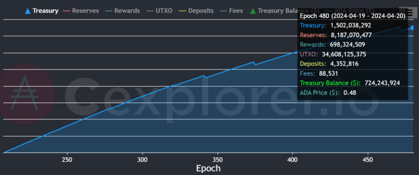 Cardano Hazinesi, dolaşımdaki arzın %4’ünden fazlasını oluşturan 720 milyon $’ın üzerinde değere sahip 1,5 milyar ADA tokenı biriktirdi.