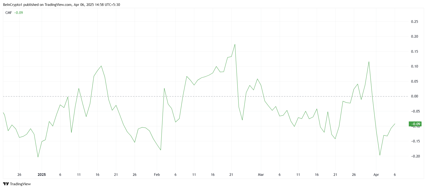 Chaikin Money Flow (CMF) göstergesi, Celestia’dan önemli çıkışlar gösterdi ve bu, 2025’in başından bu yana en büyük satış aktivitesini işaret ediyor. Bu durum, %30’luk fiyat düzeltmesinin ardından yatırımcılar arasında artan korkuyu yansıtıyor.