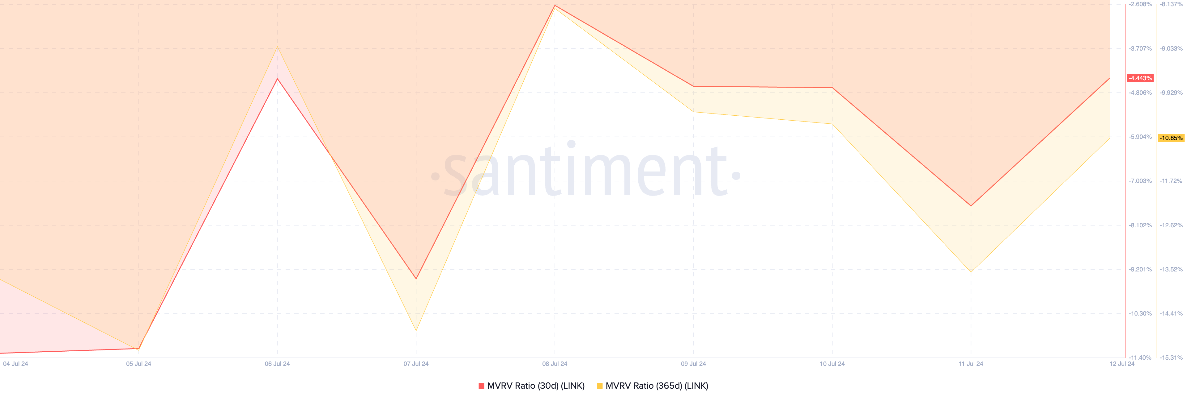 SponsoredÖrneğin, LINK’in 30 günlük ve 90 günlük hareketli ortalamalar için MVRV oranları sırasıyla yüzde -4,43 ve yüzde -10,85’tir.