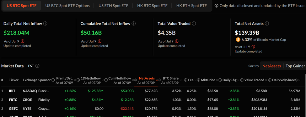 Sponsored SponsoredBenzer şekilde, sadece 9 Temmuz’da Bitcoin spot ETF’leri 218 milyon Dolar net giriş gördü ve bu, kurumsal birikimin beşinci ardışık günü oldu. Ethereum ise 211 milyon Dolar net girişle geride kalmadı ve ABD varlık yöneticilerinden artan ilgi gördü.