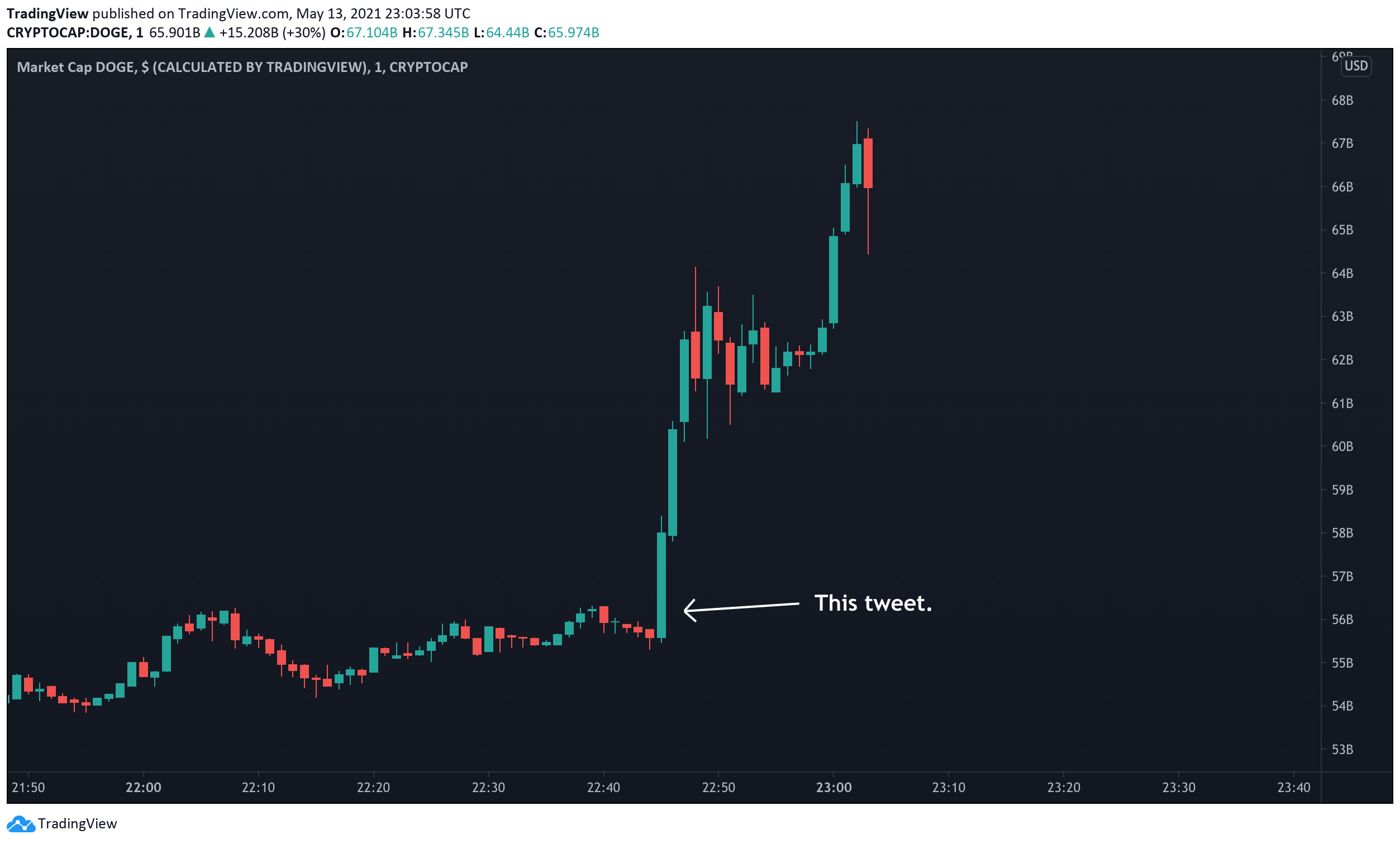 Başarılı iş adamı bu paylaşımında Dogecoin geliştiricileri ile sistemdeki işlem verimliliğini geliştirmek için birlikte çalıştığını açıkladı. Musk’ın bu paylaşımına kripto para dünyasından tanıdık isimlerden cevap geldi. Yaptığı başarılı grafik okumaları ile ünlü Michaël van de Poppe bu paylaşımın altına “Artık tweet atayı bırakır mısın?” yazdı. Elon Musk’ın paylaşımının hemen ardından piyasa değeri 10 milyar dolar artan Dogecoin bir kez daha 70 milyar doların üzerine tırmandı.