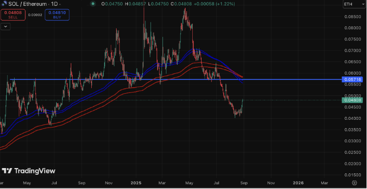 Bu esnada, ETH’den elde edilen kârlar SOL’a kayabilir ve ilgili anlatılar da ilgi kazanabilir. Son zamanlarda SOL/ETH paritesi güçlü bir şekilde toparlandı ve 0,05716 direnç seviyesini yeniden test etme potansiyeli gösteriyor.