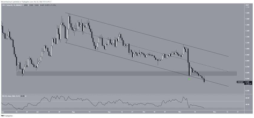 Günlük grafiğin teknik analizine göre CRV fiyatı, 28 Temmuz’dan bu yana uzun vadeli alçalan paralel kanal içinde hareket ediyor.