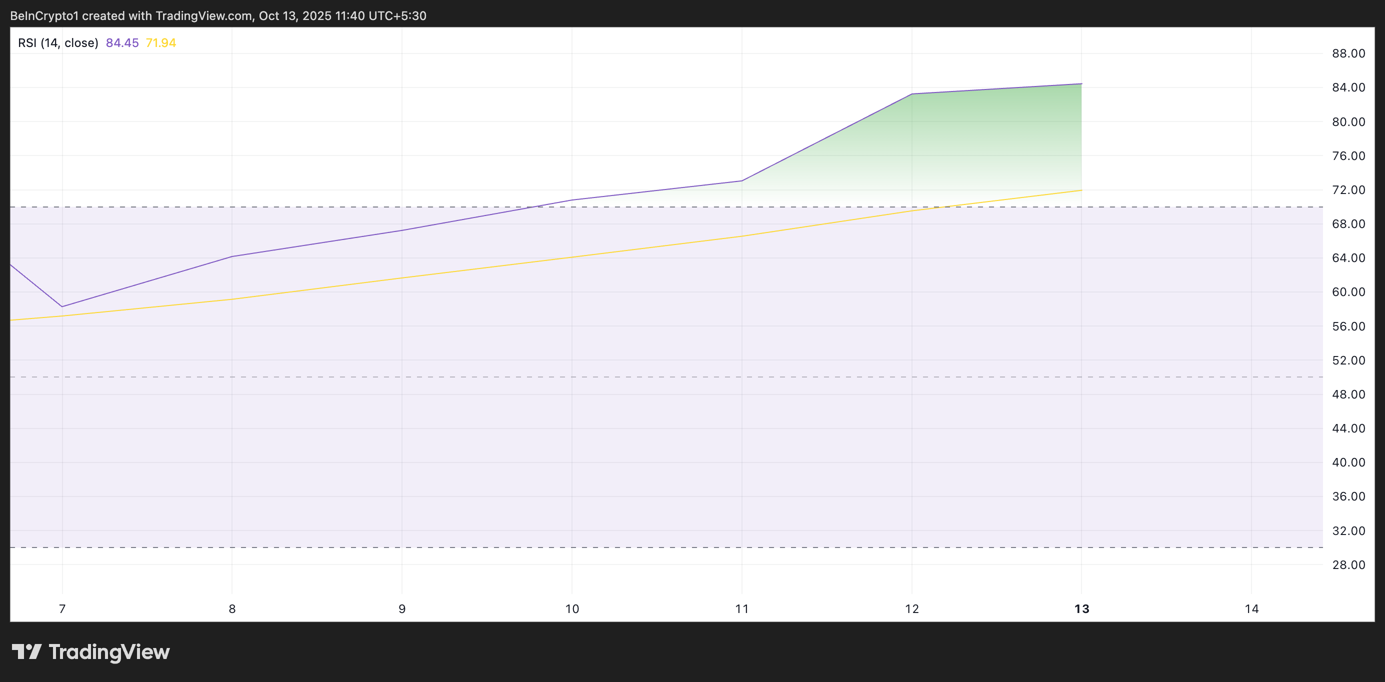 Ayrıca, spot piyasa verileri DASH’in aşırı alımda olduğunu gösteriyor ve mevcut alım ivmesinin tükenmek üzere olduğunu işaret ediyor. Basın zamanında, Göreceli Güç Endeksi (RSI) 84,45 seviyesinde ve yukarı yönlü trend gösteriyor, bu da aşırı genişlemiş bir piyasaya işaret ediyor.
