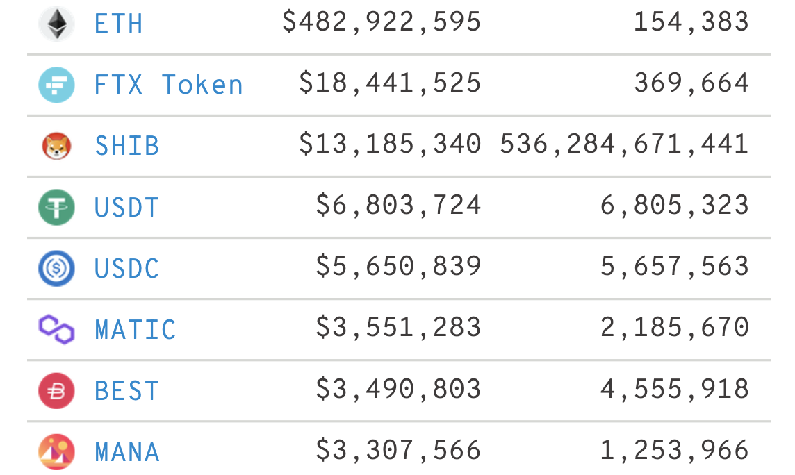 Ethereum balinaları ETH dışında en çok FTX Token (FTT) ve Shiba Inu tutuyor. En büyük 1.000 ETH balinası toplamda 1,3 milyar dolar değerinde SHIB token saklıyor. Balianların en çok tuttuğu token ABD’nin en popüler borsalarından FTX’in yerel tokenı FTT. Balinalar 1,8 milyar dolar değerinde FTT tutuyor. FTT bu hafta %11 değer kazanarak 49,76 dolara yükseldi.