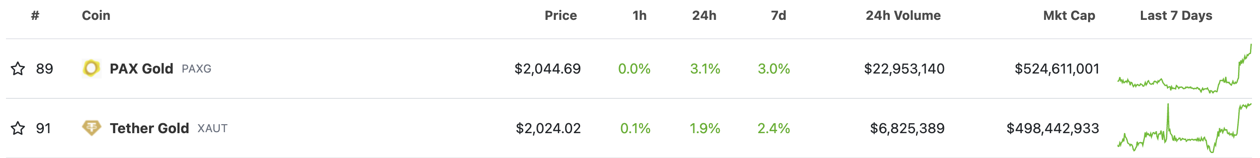 SponsoredMevcut durumda PAX Gold (PAXG) ve Tether Gold (XAUT), toplamda 1 milyar dolarlık piyasa değerini aştı. Böylece blockchain üzerinde yer alan, altın stablecoin ürünleri önemli bir eşiği geride bırakıyor.