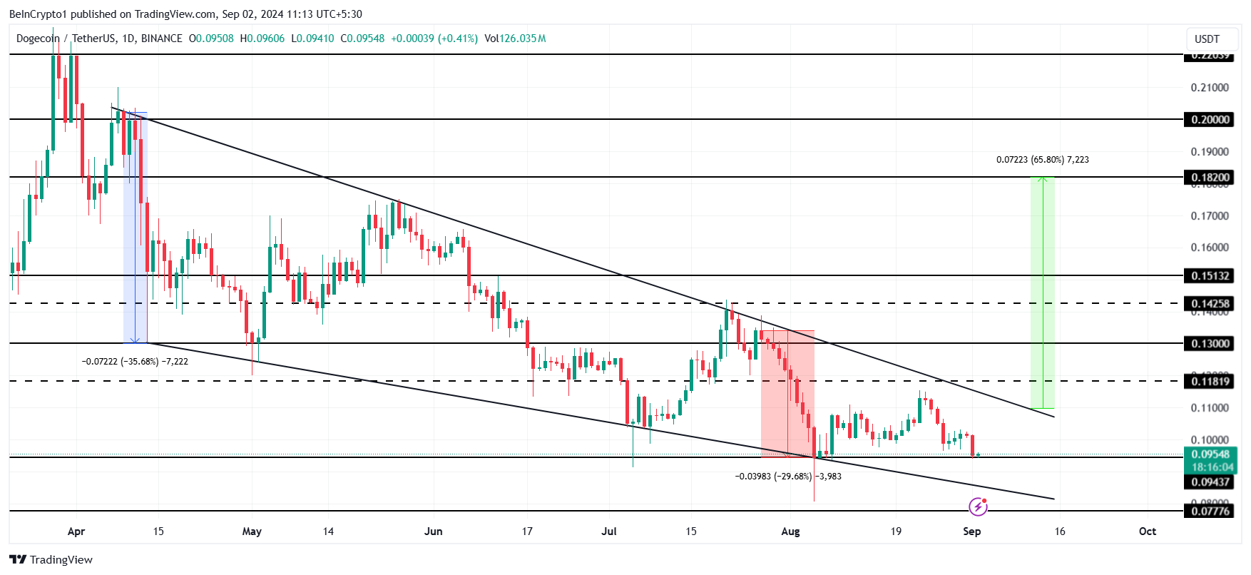 DOGE, 0,118 dolar direncini kırmayı başarırsa, alçalan kama modelinden de bir kırılmaya işaret edecektir. Böyle bir hareket, bir sonraki hedef 0,182 dolar olmak üzere %65’lik bir ralliyi tetikleyebilir. Bu fiyat seviyesi önemli bir kazancı temsil ediyor ve aynı zamanda DOGE’nin daha fazla büyüme potansiyeline olan güveni yeniden sağlıyor.