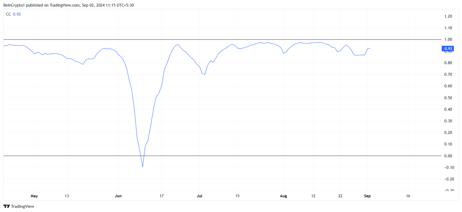 Ayrıca, Dogecoin’in makro momentumu, iki kripto para 0,92’lik yüksek bir korelasyona sahip. Bu durumda da Bitcoin’den (BTC) büyük ölçüde etkilenir. Bu korelasyon, DOGE’nin fiyat hareketlerinin Bitcoin’in performansıyla yakından bağlantılı olduğu anlamına gelir. Bitcoin fiyat değişiklikleri yaşadığında, Dogecoin değişen yoğunlukta da olsa genellikle aynı şeyi yapar.