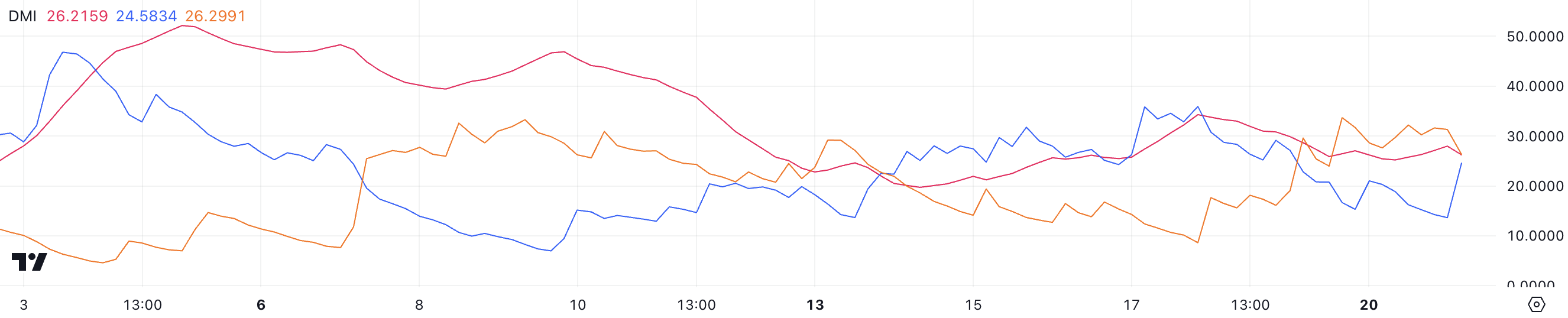 DOGE ADX şu anda 26,2 seviyesinde, birkaç saat önce 27,9 seviyesindeydi.