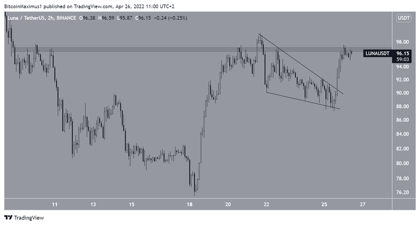 Terra (LUNA) 21 Nisan’da alçalan bir takoz formasyonu içinde hareket etmeye başladı. Diğer yandan alçalan takoz formasyonları, yükselişe işaret eden formasyonlar olarak değerlendiriliyor. Dolayısıyla çoğu kez formasyondan bir çıkış gerçekleşiyor.