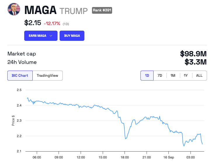 Suikast girişimi haberleri ortaya çıktıkça, finansal piyasalar keskin bir tepki gösterdi. Trump temalı bir meme coin olan MAGA (TRUMP), değerinin %12’den fazla düştüğünü gördü.