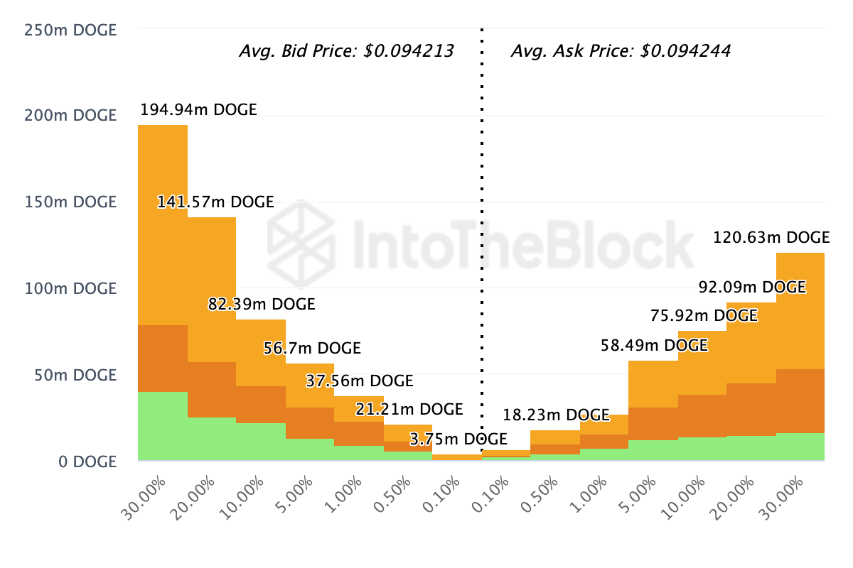 Yine de, en üst 20 kripto para borsasından elde edilen verilere göre, meme coin bu sefer fiyat artışını sürdürebilir. IntoTheBlock’a göre, geniş piyasa 500 milyon coin’i, toplamda 50 milyon dolar değerinde satın almak (teklif vermek) için hazır görünüyor.