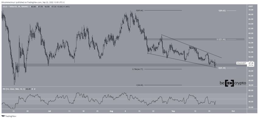 Eğer Elrond (EGLD Coin), 44 dolar ile 46 dolar arasında yer alan destek bölgesinde tutunmayı başarırsa, şu anda içinde bulunduğu alçalan takoz formasyonundan çıkış yapabilir.