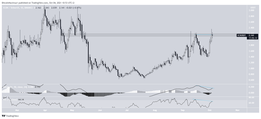 ICON (ICX) 15 Eylül’de 2,22 dolar seviyesinde bir tepe oluşturdu ancak tepe oluştuktan hemen sonra 2,15 dolardaki direnç bölgesinden reddedildi.