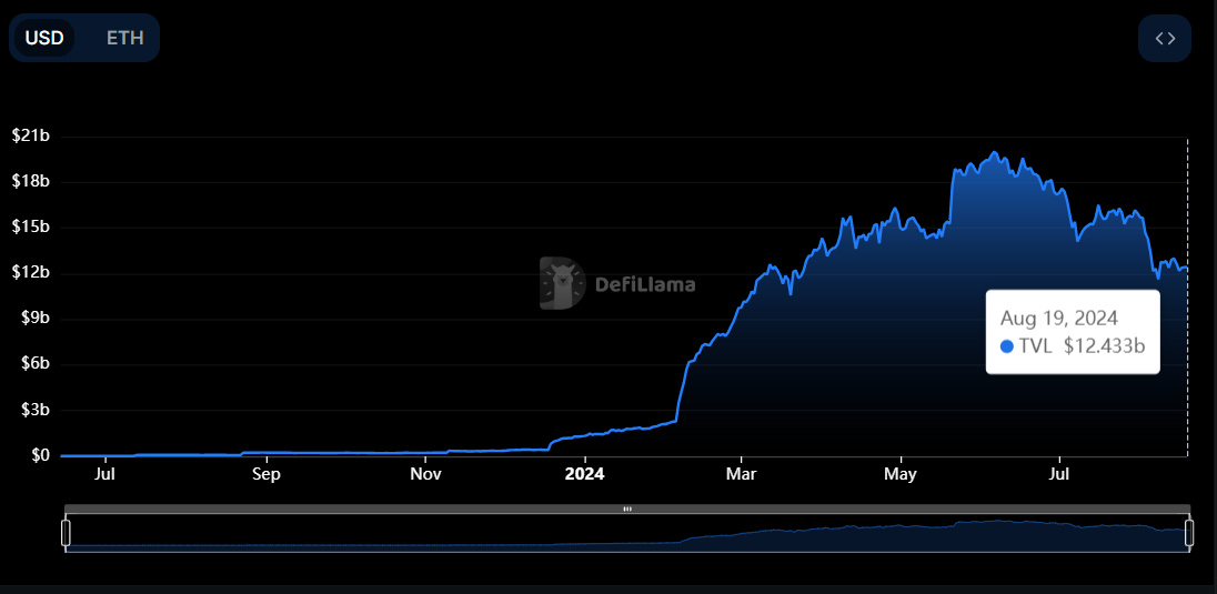 Bu genişleme, DeFi piyasasına hakim olmaya devam eden EigenLayer için başka bir kilometre taşını işaret ediyor. Bu yazının yazıldığı sırada DefiLlama verileri, EigenLayer’ın yaklaşık 12,4 milyar dolarlık kilitli toplam değeriyle en büyük ikinci DeFi protokolü olduğunu gösteriyor.