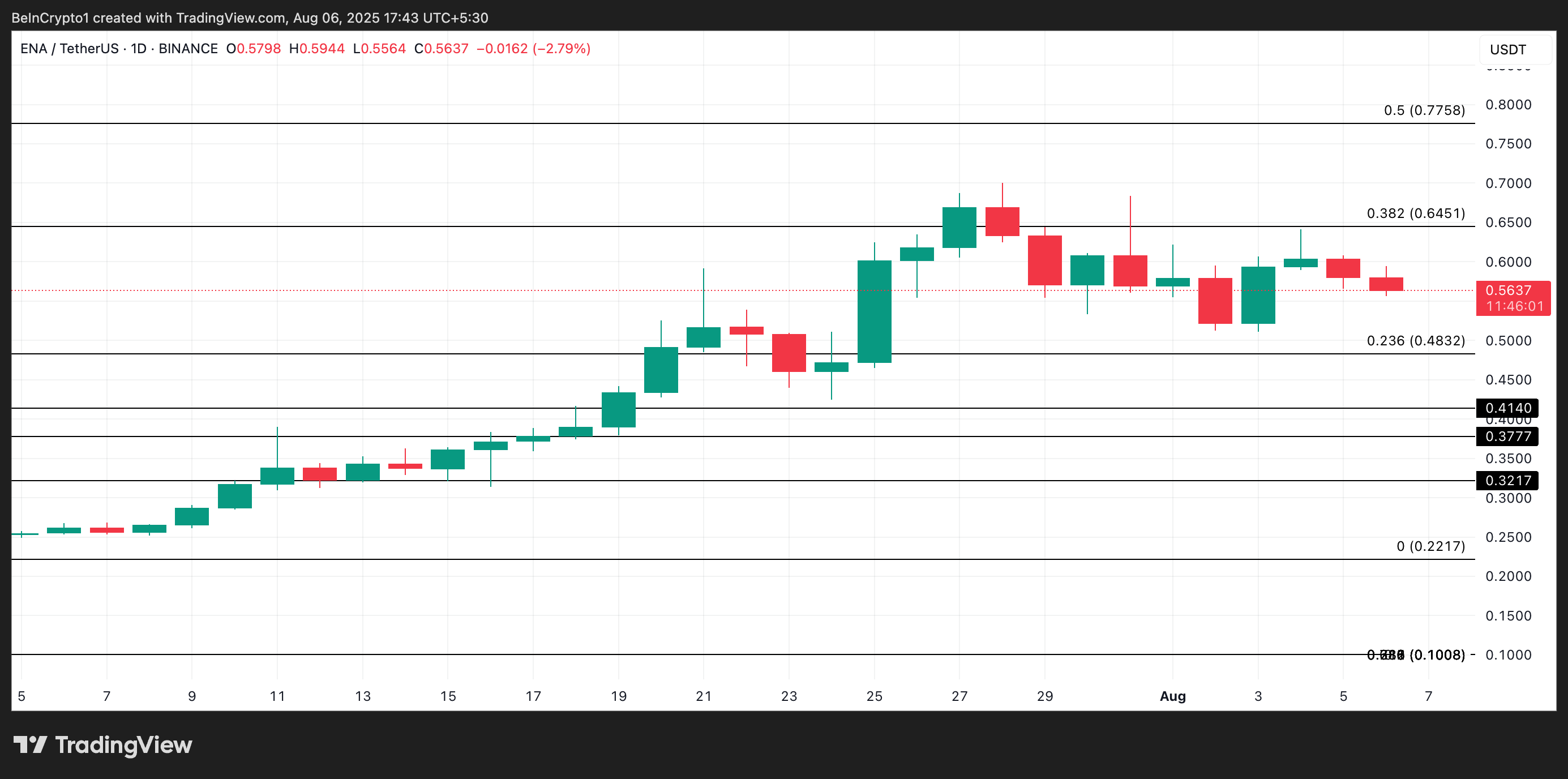ENA için bu durum, ayıların ivmeyi ele geçirdiğini ve daha fazla düşüş olasılığını artırdığını doğruluyor.