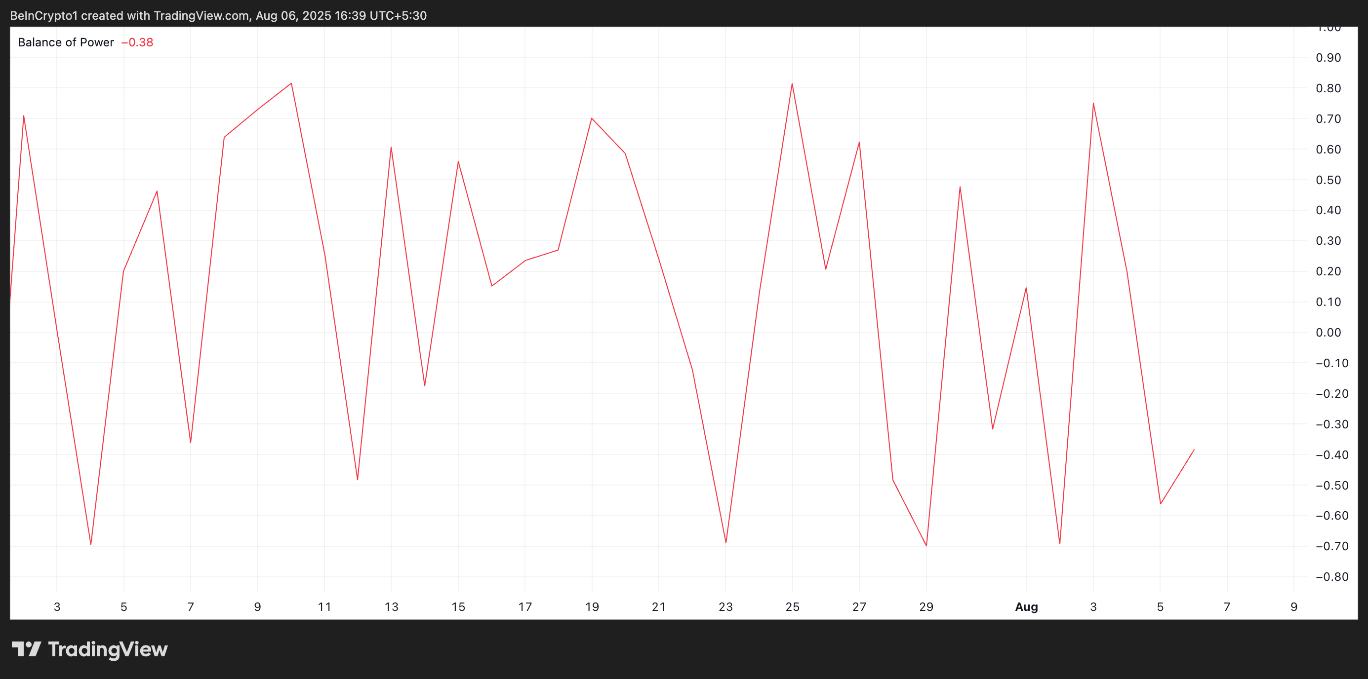 BoP, piyasadaki alıcılar ile satıcılar arasındaki gücü ölçer ve belirli bir dönemde boğaların mı yoksa ayıların mı kontrolü elinde tuttuğunu gösterir. Negatif bir BoP okuması, satış baskısının hakim olduğunu ve satıcıların fiyatları alım girişimlerine rağmen düşürdüğünü gösterir.