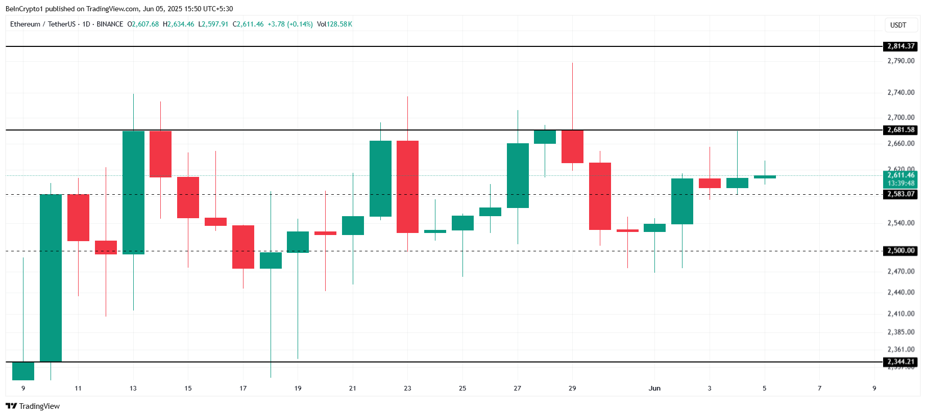 Ethereum, son bir aydır 2.681 Dolar direncinin altında fiyat durgunluğu yaşıyor. Buna rağmen fiyat hareketi nispeten istikrarlı.
