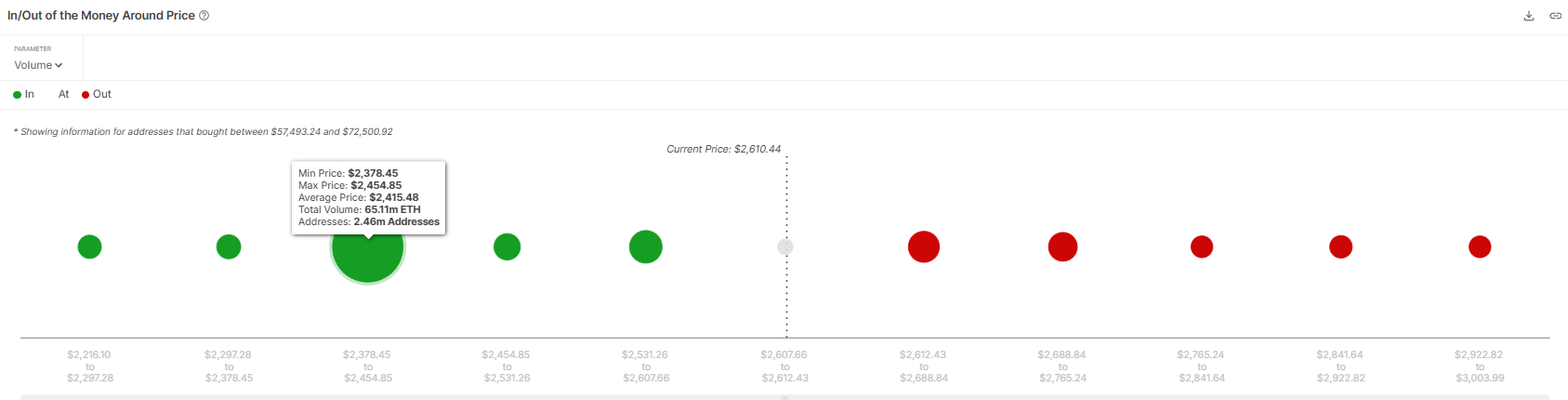 Ethereum’un makro momentumu incelendiğinde, IOMAP göstergesi 2.378 Dolar ile 2.454 Dolar arasında güçlü bir talep bölgesi olduğunu ortaya koyuyor. Bu bölge, neredeyse 169 milyar Dolar değerinde 65,11 milyon ETH barındırıyor ve bu da yakın gelecekte önemli satışların gerçekleşmesini olası kılmıyor. Bu büyük birikim, Ethereum’un fiyatındaki keskin düşüşlere karşı istikrar ve koruma sağlıyor ve bu da artan olumlu duyarlılığa katkıda bulunuyor.
