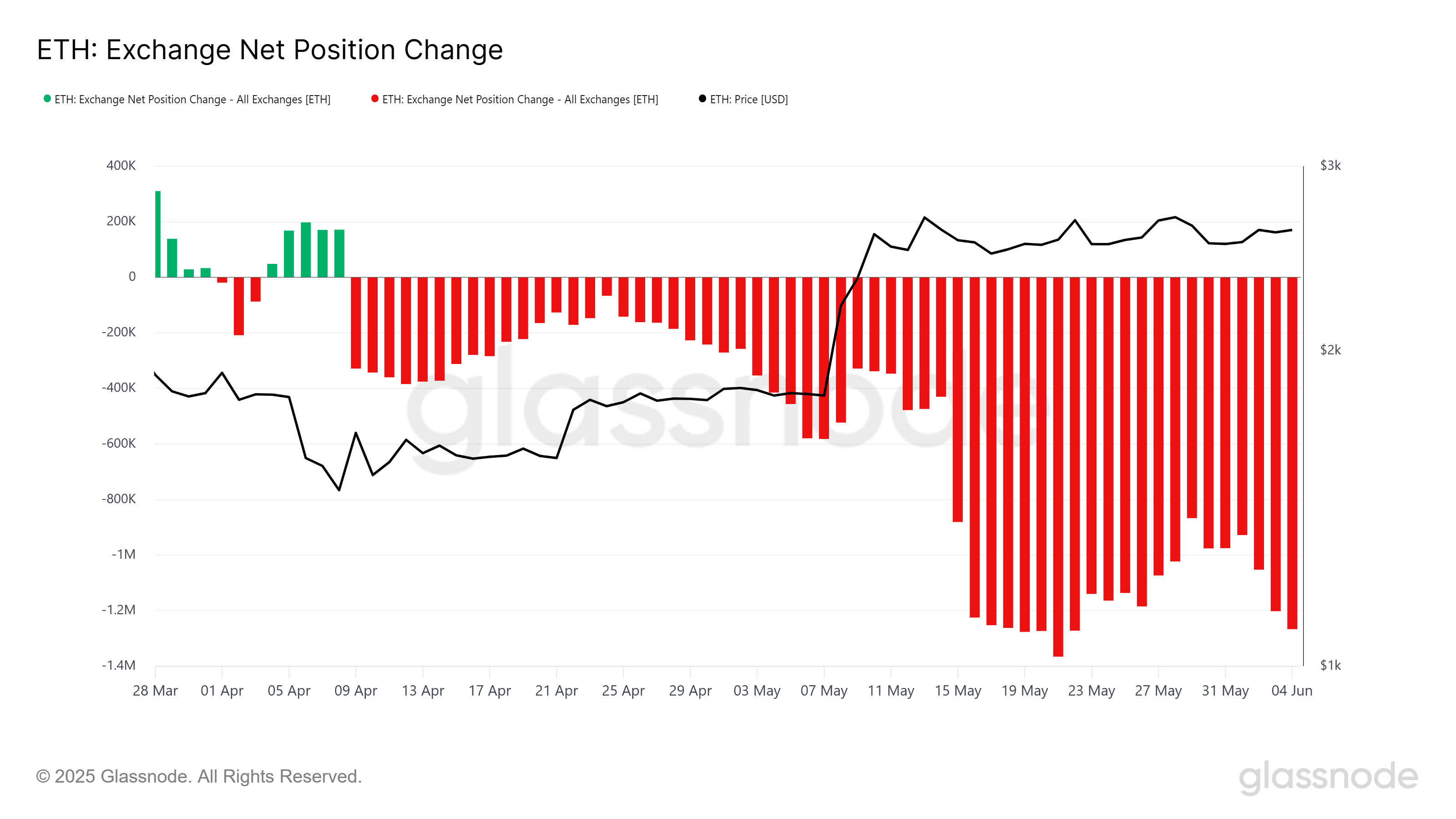 Yatırımcı duyarlılığı Ethereum lehine değişti ve haziran başından bu yana birikimde belirgin bir artış gözlemlendi. Mayıs ayının sonunda sürekli satışların ardından, yatırımcılar haziran başından bu yana 300.000’den fazla ETH satın aldı ve bu da 778 milyon Dolar’a denk geliyor. Bu artan birikim, Ethereum’un gelecekteki fiyat potansiyeline olan güvenin arttığını gösteriyor.