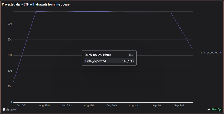 Zincir üstü verilere göre, bu hafta günlük yaklaşık 115.000 ETH staking’den çıkacak. Mevcut fiyatlarla bu, günlük dolaşıma giren 529 milyon Dolar’a eşdeğer olan neredeyse 4.600 Dolar demek.