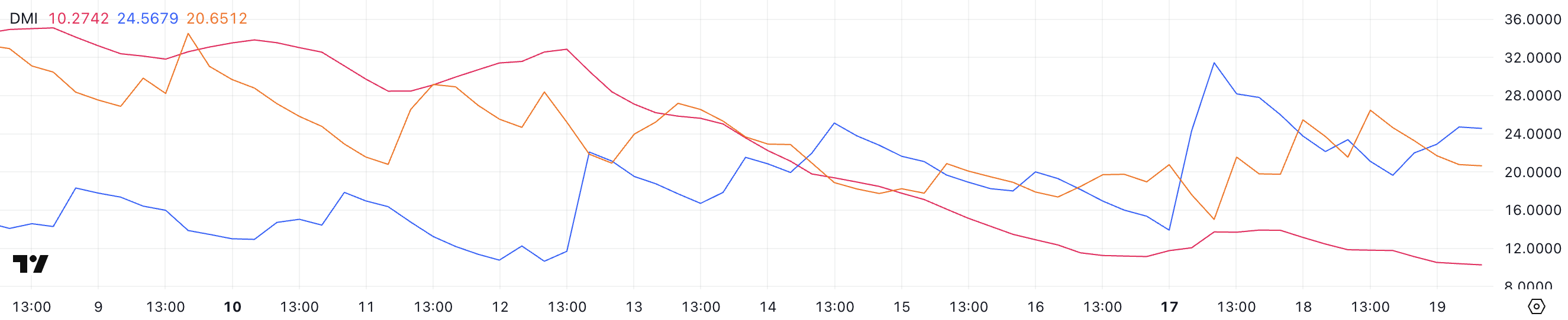 Ethereum’un DMI grafiği, ADX’in şu anda 10,2 seviyesinde olduğunu, dün 13,7’den ve bir hafta önce 32,8’den önemli ölçüde düştüğünü gösteriyor.