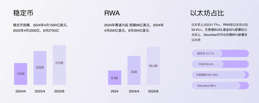 ABD GENIUS Stablecoin Yasası’nın yakın zamanda kabul edilmesi, bu değişimi yansıtıyor. Stablecoin ve gerçek dünya varlık aktivitelerinin yarısından fazlası Ethereum üzerinde gerçekleştiği için, varlık politika ve teknolojik destekten fayda sağlıyor.