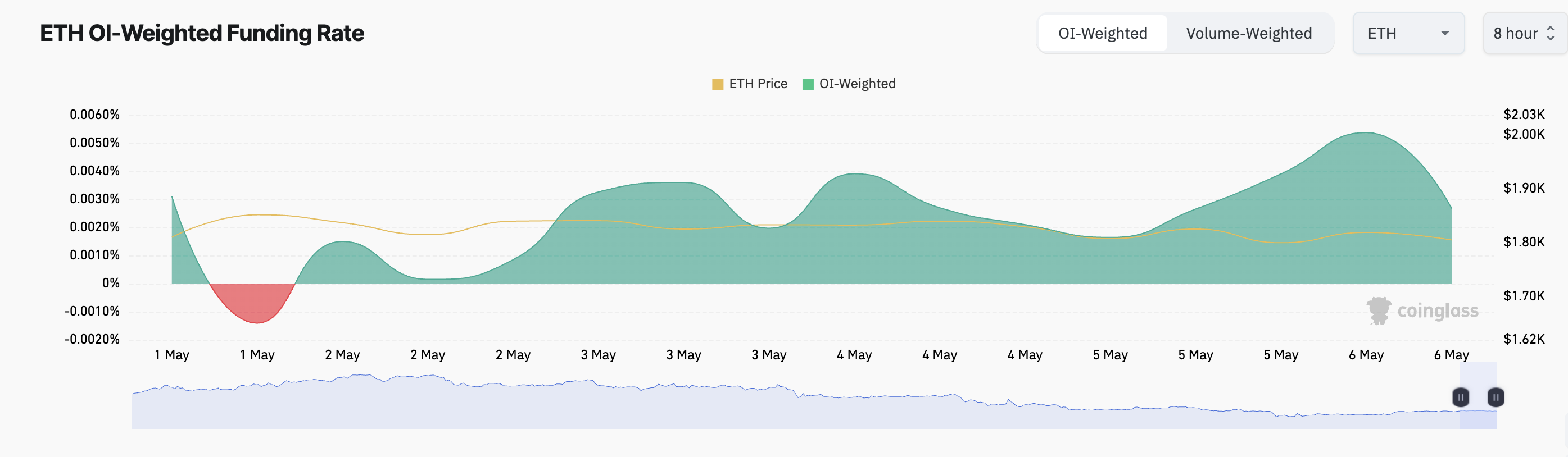 Ayrıca, coin’in sürekli pozitif fonlama oranı, ETH etrafındaki yükseliş hissiyatını pekiştiriyor. Basın zamanında, ETH’nin fonlama oranı %0,0027, bu da trader’ların uzun pozisyonları sürdürmek için hala prim ödemeye istekli olduğunu gösteriyor.