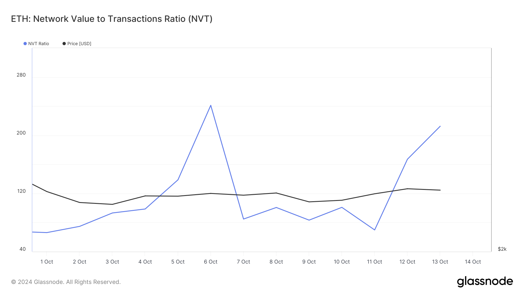 Glassnode’a göre, Ethereum’un NVT oranı son birkaç gündür artıyor, bu da ETH’nin fiyatının mevcut piyasa koşullarına göre aşırı değerli olabileceğini öne sürüyor.