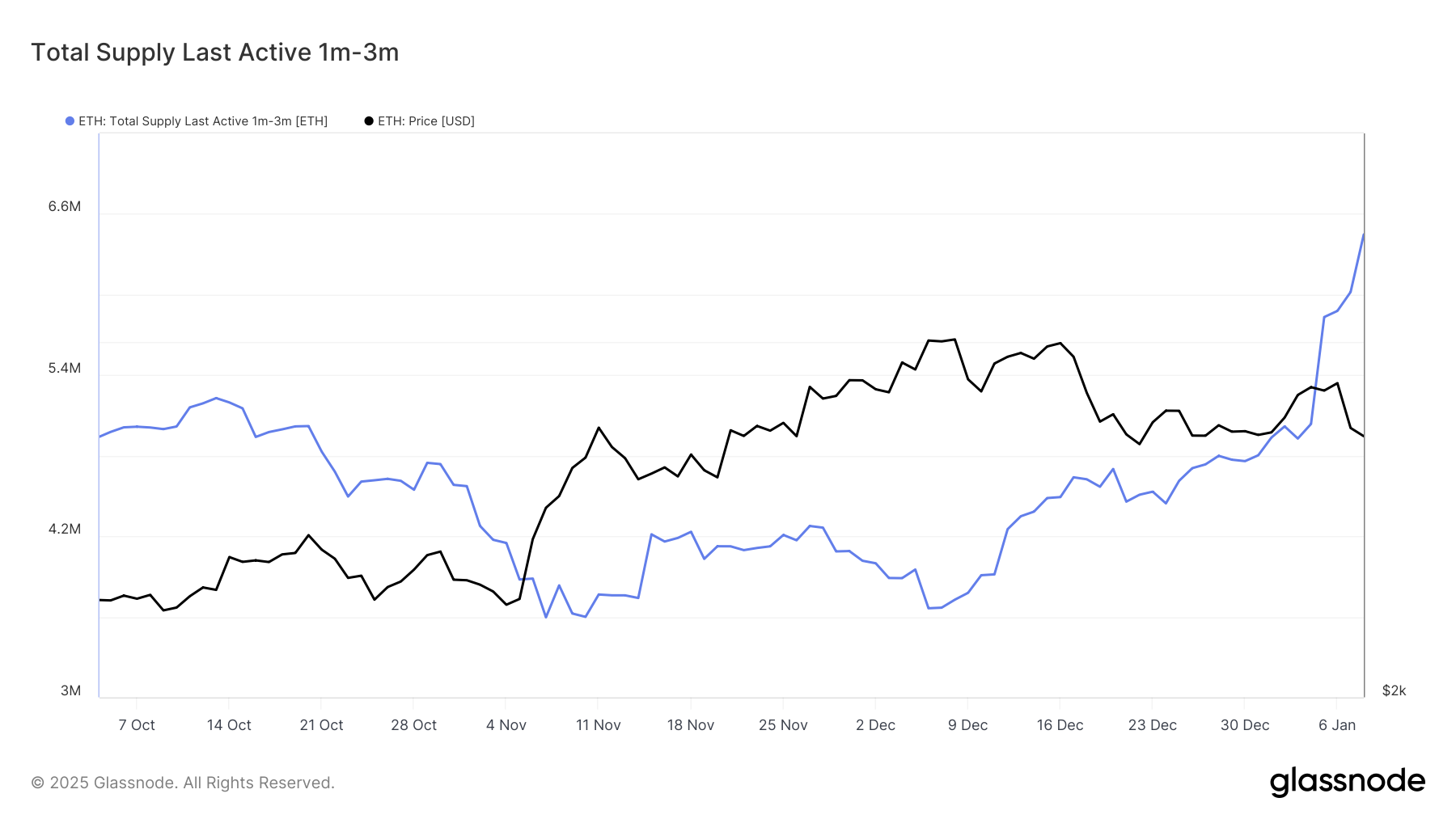 Ethereum’un bir ila üç ay arasında süren arzı arttı ve bu durum yatırımcılar arasında artan direnci yansıtıyor. Geçtiğimiz hafta, bu grubun elindeki ETH miktarı 1,52 milyon arttı. Bu eğilim, Ethereum’un son düşüşlerine rağmen, yatırımcıların pozisyonlarını tasfiye etmekten kaçındığını ve potansiyel toparlanma konusunda iyimser olduklarını gösteriyor.