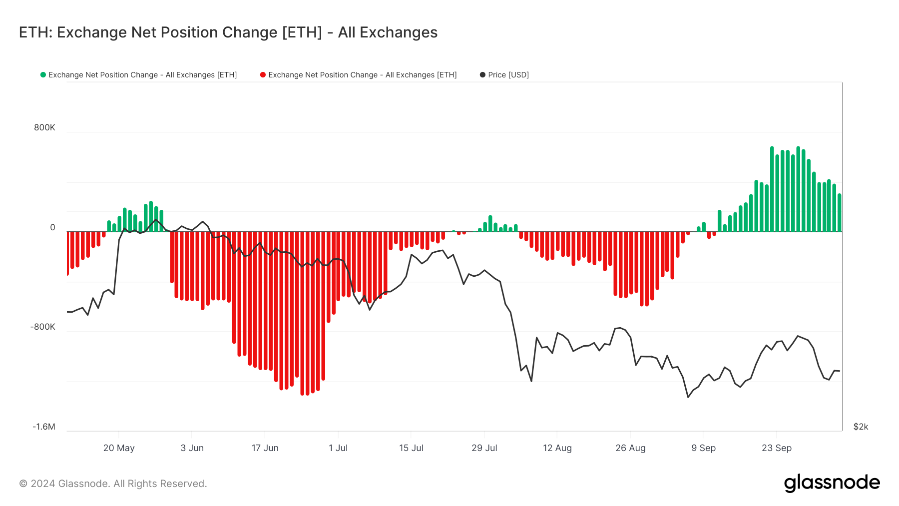 Ethereum, özellikle borsalardaki net pozisyon değişikliğini analiz ederken genel makro momentum daha olumlu görünüyor. Bu gösterge, ETH’nin borsalara giriş ve çıkış akışını izler. Son düşüş, borsalara girişlerin azaldığını gösteriyor. Daha az giriş demek daha az satış baskısı anlamına gelir. Diğer bir ifadeyle, daha az yatırımcıyı varlıklarını satmaları için borsalara taşıyor demektir.